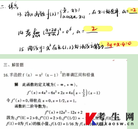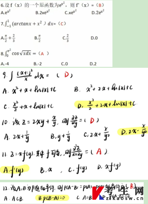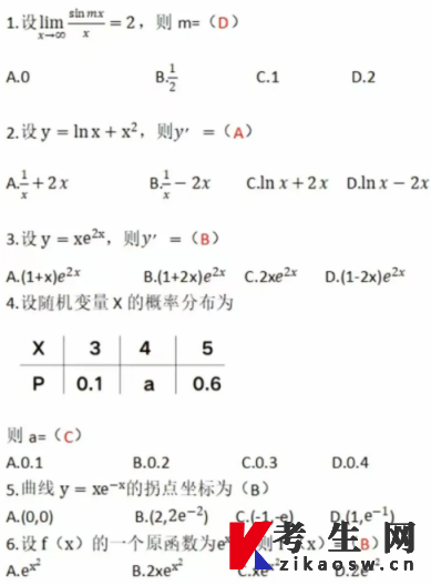 2024年成人高考专升本高等数学(二)考后真题回忆版