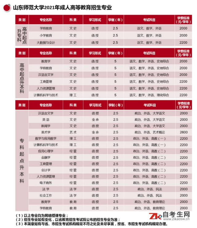 在学校党委、行政的正确领导下,经过几代师大人的不懈努力,为经济建设和社会发展培养了大批合格人才。至今为社会培养了270656名各类专门人才(含我校主考高教自学考试各专业毕业生)。现在学校成人教育遍及全省17地市,共有成人教育招生专业75个,其中本科教育47个专业,专科教育28个专业。汉语言文学专业被省教育厅评为山东省成人高等教育品牌专业,面向对象程序设计等9门课程被评为山东省成人高等教育特色课程。我校主考的高等教育自学考试专业有汉语言文学、学前教育等16个。目前学校有各种学历教育在校生23000余人。在长期的办学实践中,学校成人教育形成了鲜明的自身特色,即紧紧依靠学校整体资源,充分发挥学校整体优势,大力开展各种形式的继续教育。牢固树立质量观念,坚持以教学为中心,以管理为手段,促进成人教育质量的不断提高。秉承教书育人,管理育人,服务育人的理念,不断提高成人教育的现代化、科学化管理水平,促进学校成人教育事业持续稳定健康发展。