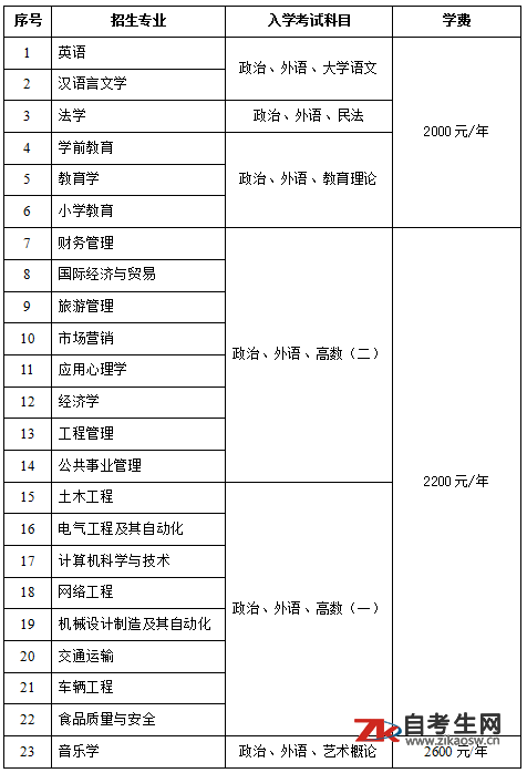 ●招生专业、入学考试科目、学费