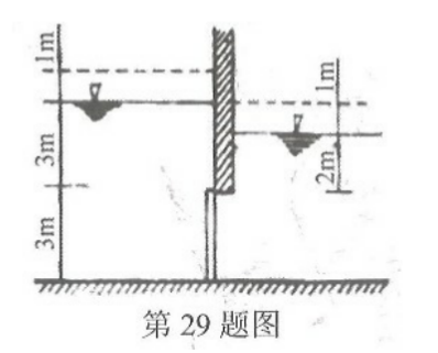 2、[主观题]【综合应用计算题】如图所示为一长方形平面闸门,高3m,宽2m,上游水位高出门顶3m,下游水位高出门顶2m,求:闸门所受总压力和作用点。