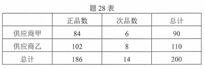 1、[主观题]【计算题】某公司从两个供应商处购买同一种计算机零件,质量情况如题28表所示: