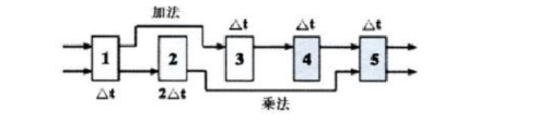2、[主观题]【综合应用题】一条动态多功能流水线由5段组成(连接如下图所示),加法用1、3、4、5段,乘法用1、2、5段,第2段的时间为