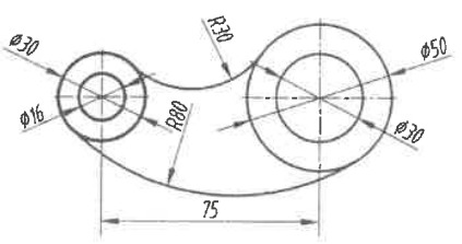 2、[主观题]【作图题】以1:1的比例抄画下列图形,不标注尺寸,圆弧连接需保留辅助线(8分)