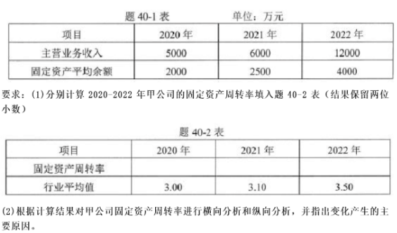 3、[主观题]【计算分析题】甲公司和乙公司是同行业的两个 企业,甲公司与乙公司 2022 年财务报表的部分数据如 题 39-1 表: