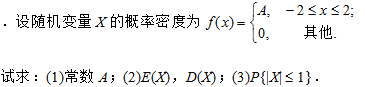 试求:(1)常数A;(2)E(X),D(X);(3)P{|X|<=1}.