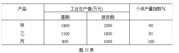 20、【计算题】某地三种产品的工业总产值与个体产量指数资料如题31表所示: