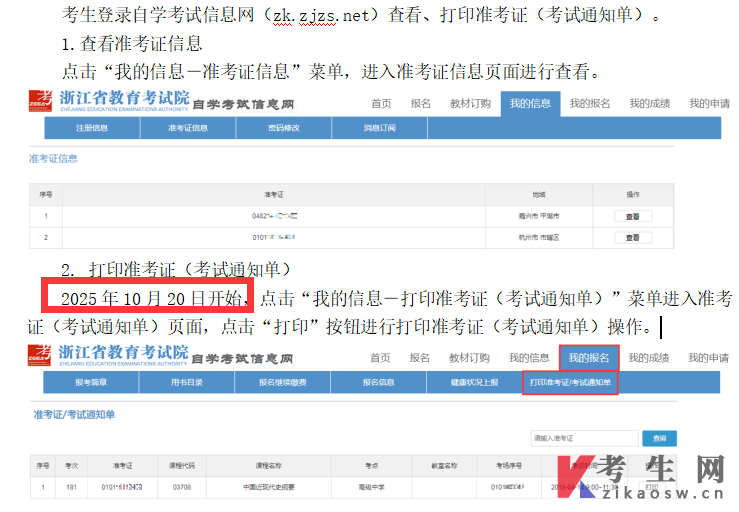 2025年10月浙江自考准考证打印时间?由浙江自考生网收集整理,更多浙江自考考试须知、浙江自考考试时间安排、浙江自考成绩查询等信息,请关注浙江自考生网。