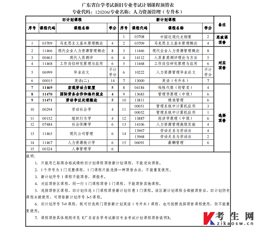 课程顶替具体规则详见:广东省自学考试新旧专业考试计划课程顶替说明