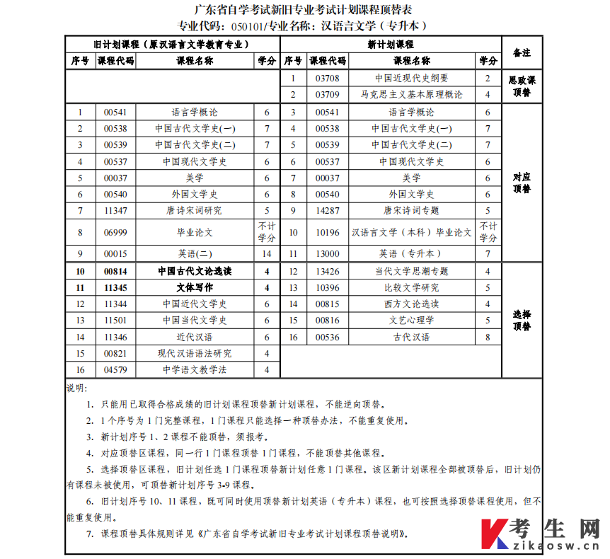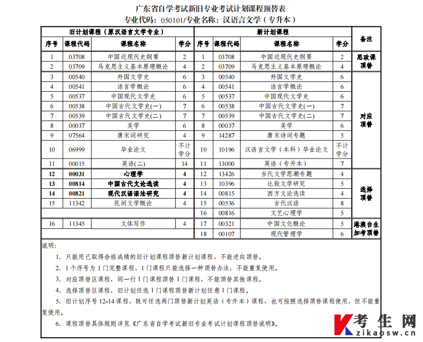 课程顶替具体规则详见:广东省自学考试新旧专业考试计划课程顶替说明