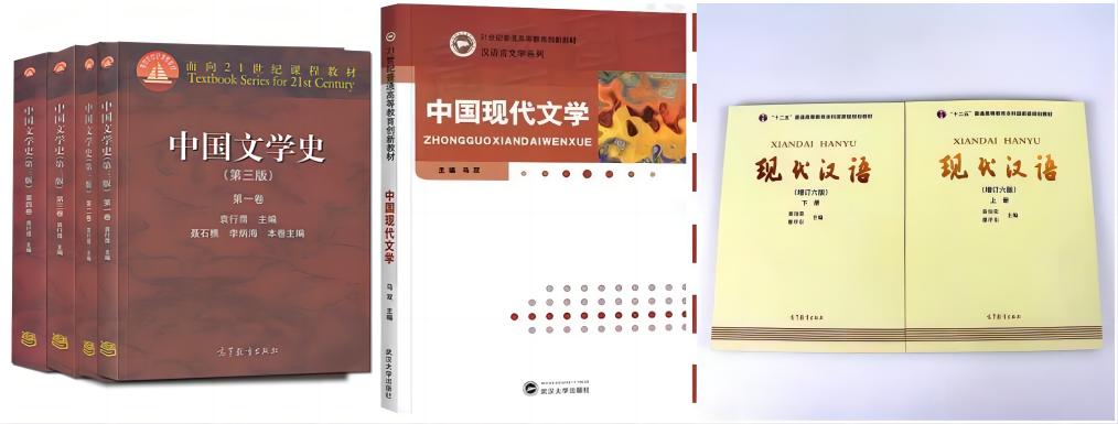 《中国文学史、中国现代文学、《现代汉语》(增订六版)(上下册)、》主编:袁行霈 主编/马双主编/黄伯荣、廖序东主编版次:2014年/2017年出版社:武汉大学出版社/高等教育出版社